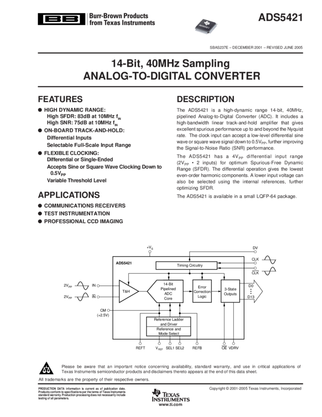 ADC Single Pipelined 40Msps 14-bit Parallel 64-Pin LQFP T/R