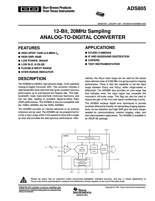 ADC Single Pipelined 20Msps 12-bit Parallel 28-Pin SSOP T/R