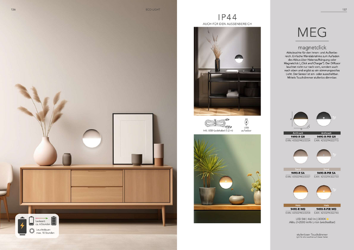 Lampa ścienna LED z czujnikiem ruchu ECO-Light MEG + PIR 9490-R-PIR GR 5 W antracytowy 460.00 lm