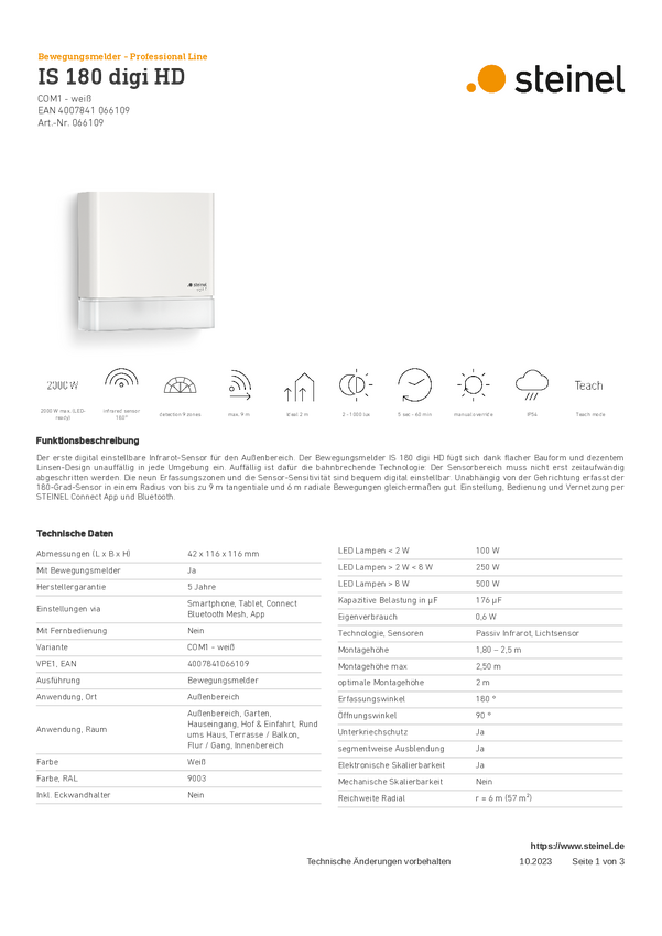 Czujnik ruchu PIR Steinel 066109 180 ° IP54 biały
