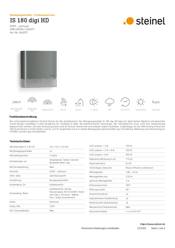 Czujnik ruchu PIR Steinel 066079 180 ° IP54 antracytowy