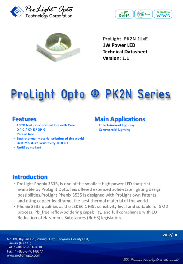 LED-PK2N-1LLE, Phenix 3535, 1W, barwa , typ. 430mW, Prolight