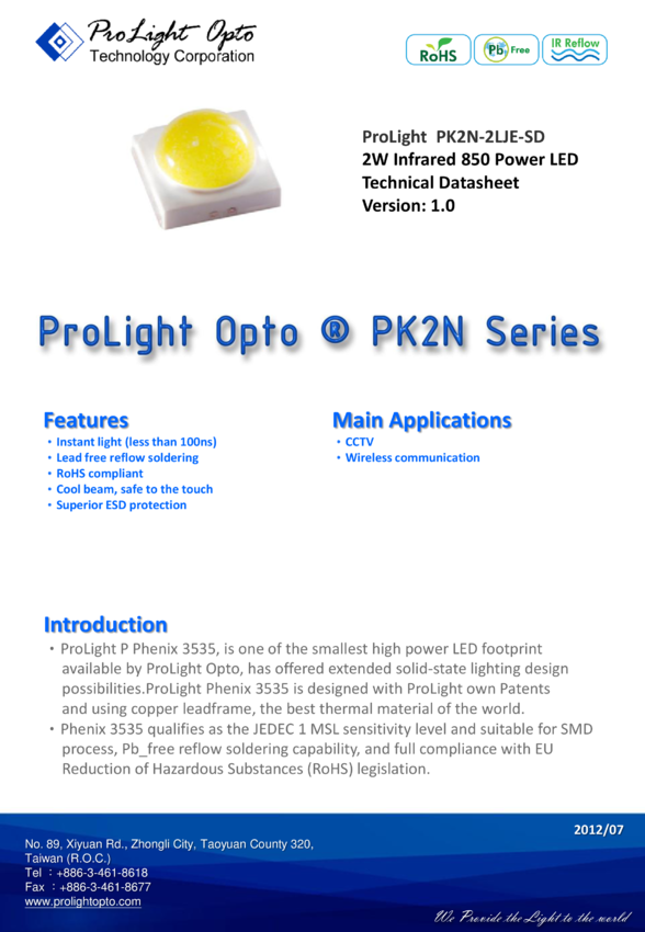 LED-PK2N-2LJE-SD, Phenix 3535, 2W, , typical 855nm, 515-630mW / 1A, Prolight