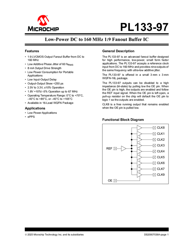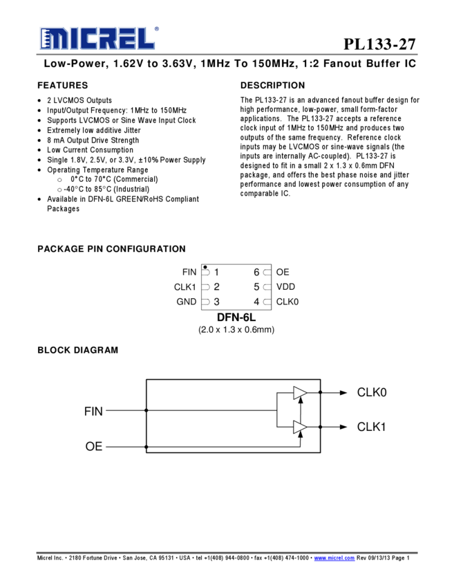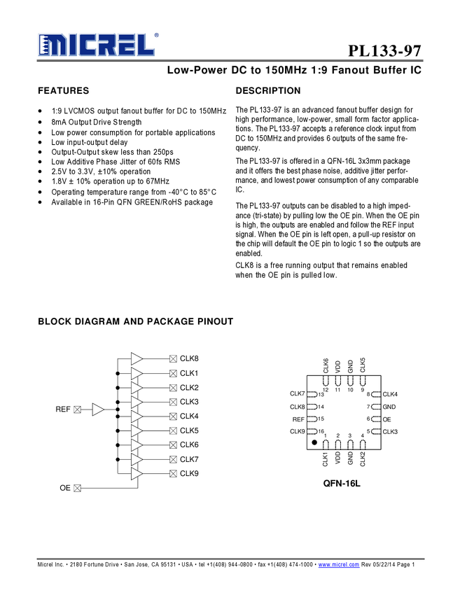 PL133-97 - Low Power DC to 150MHz 1:9 Fanout Buffer IC (11/09/2015)