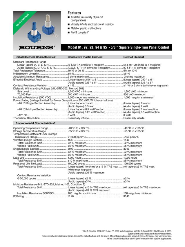 Res Conductive Plastic POT 10K Ohm 20% 1/4W 1(Elec)/1(Mech)Turn 3.18mm Pin Panel Mount/Through Hole