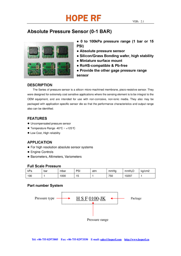 Bezwzględny czujnik ciśnienia, zakres 100kPa, obudowa plastikowa