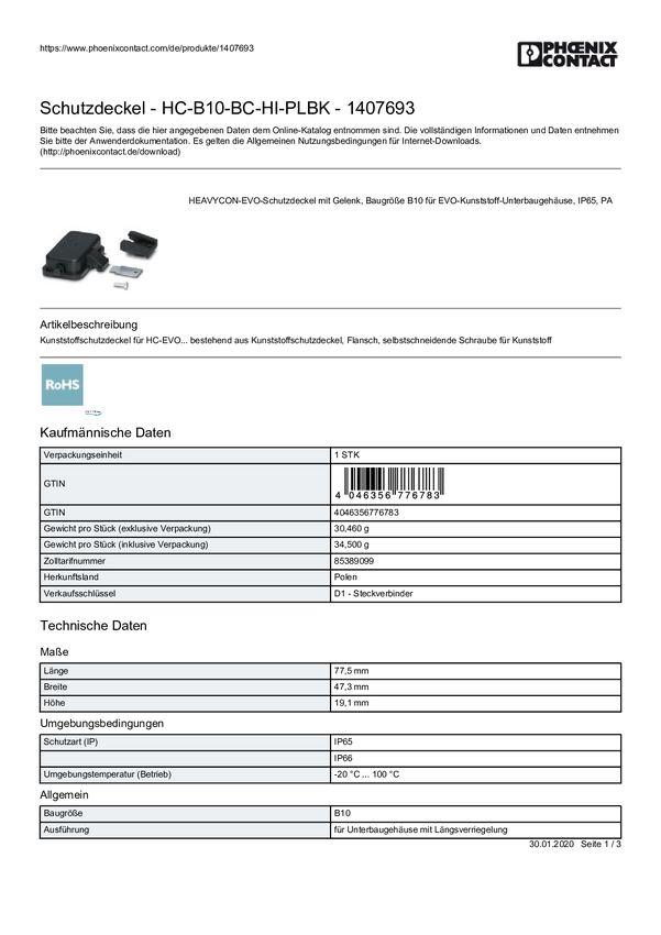 Phoenix Contact HC-B10-BC-HI-PLBK 1407693 Złącze przemysłowe Zawartość: 1 szt.