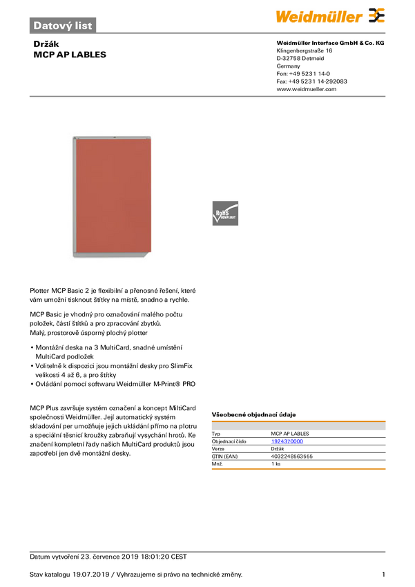 Akcesorium plotera Weidmüller MCP AP LABLES 1924370000, 1 szt.
