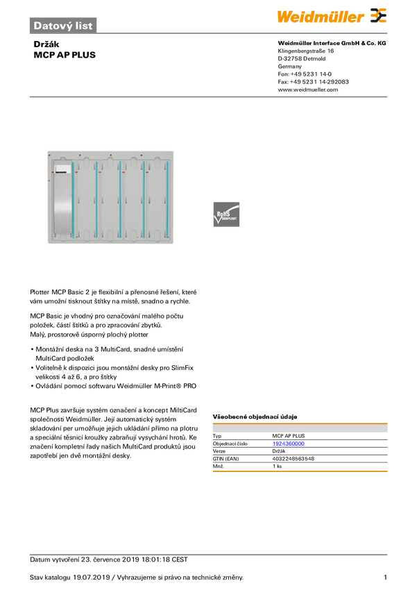 Akcesorium plotera Weidmüller MCP AP BASIC 1139880000, 1 szt.