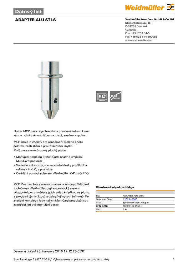 Akcesorium plotera Weidmüller ADAPTER ALU STI-S 1762440000, 1 szt.