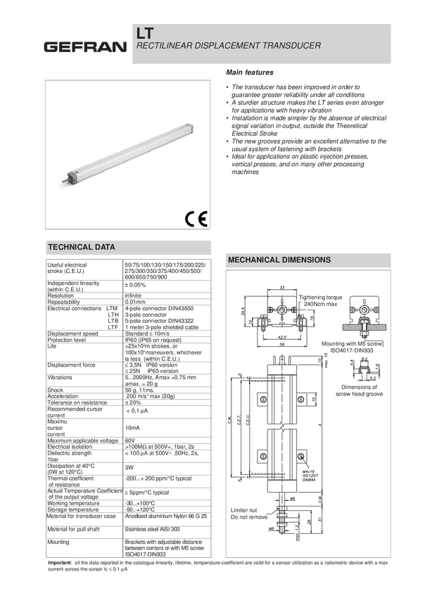 Potencjometr liniowy travel 200mm; rez.5kohm; przekrój 31,7x 34,75mm;rozstaw srub mocujących 43mm; lin.1%;ośka 6,35mm M6 Odpowiednik Sakae PM30FLP..A; minimalne różnice: gwint M5 za miast M6; inne złącze; mocowania sprzedawane są oddzielnie