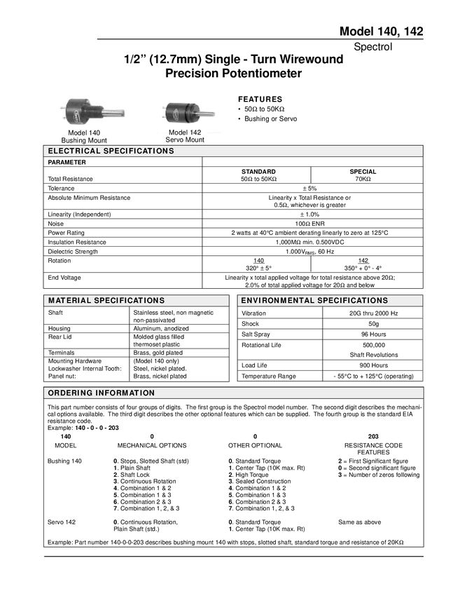 1/2"=12,7mm, 1 obrotowy, servo, drutowy Potencjometr drutowy; Servo; lin 1%; tol.5% 1 obrotowy; średnica 1/2"=12,7mm; ośka 1/8"=3,17mm trwałość 500.000 obr,; moc 2W; wersje 3-cont 0-mech stop