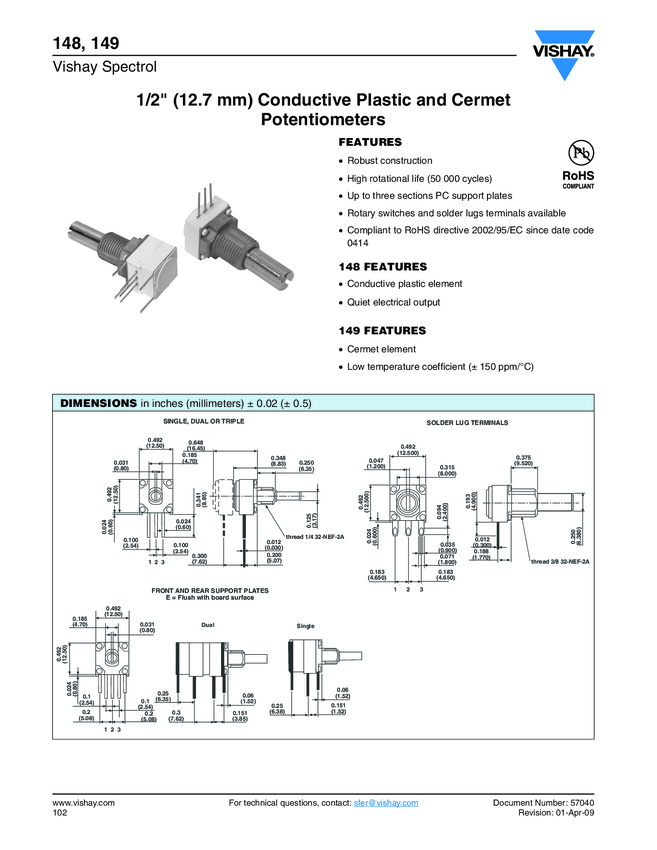1/2"=12,7mm, przewpodzący plastyk, bushin 1/4"ośka Typowe wartości rezystancji:1k,5k,10k,50k,100k