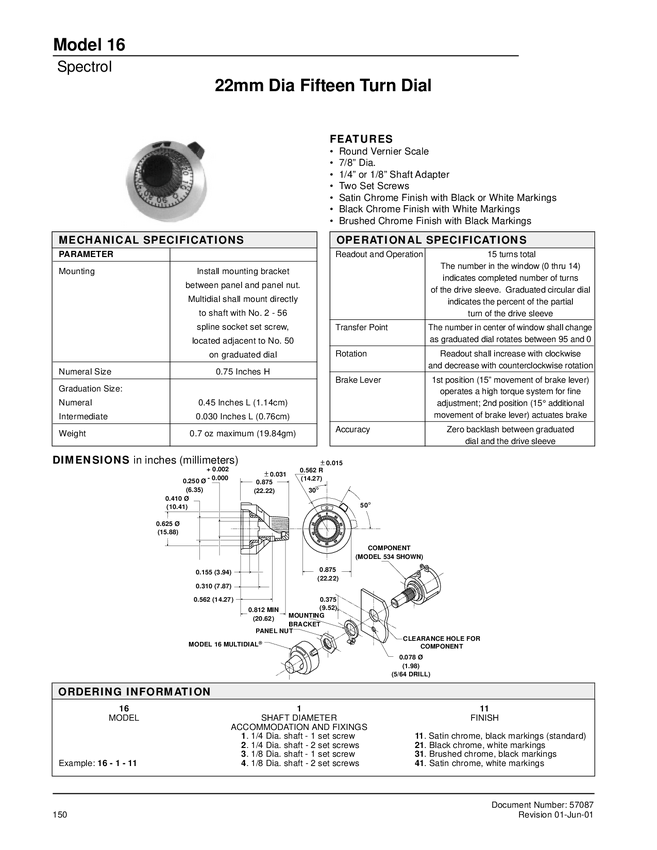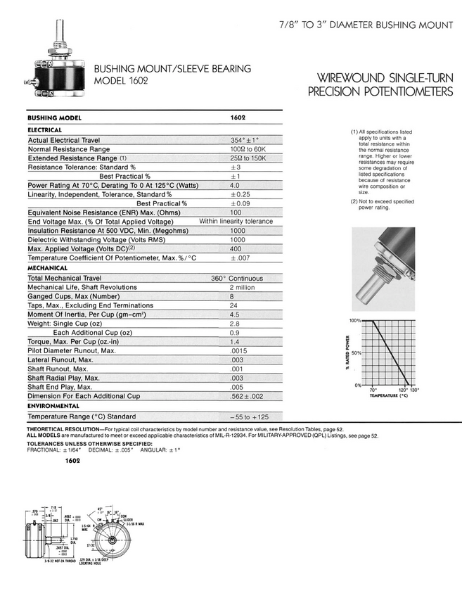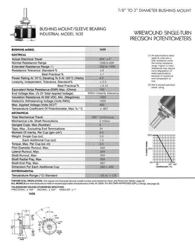 Potencjometr drutowy; Bushing 1 obrotowy; średnica 1 3/4"