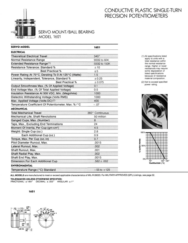Potencjometr Przewodzący plastyk; Servo 1 obrotowy; średnica 1 3/4"