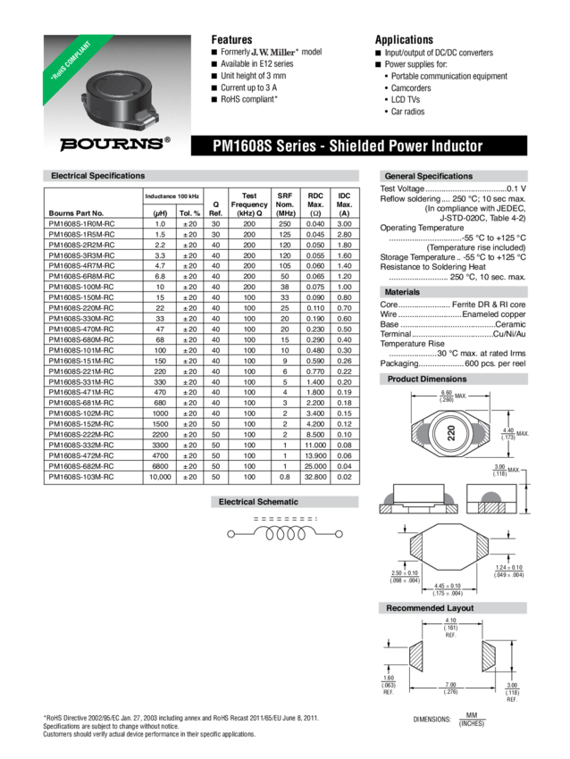 Ind Power Shielded Bobbin Core 2.2mH 20% 100KHz 50Q-Factor Ferrite 100mA T/R