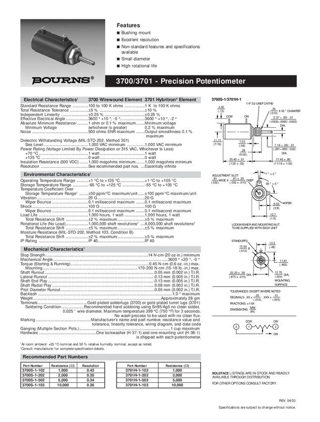 =PP3750 BOURNS;SPECTROL; SERVO 1/2"=12,7mm,10 obrotowy,drutowy; ośka 2,37mm