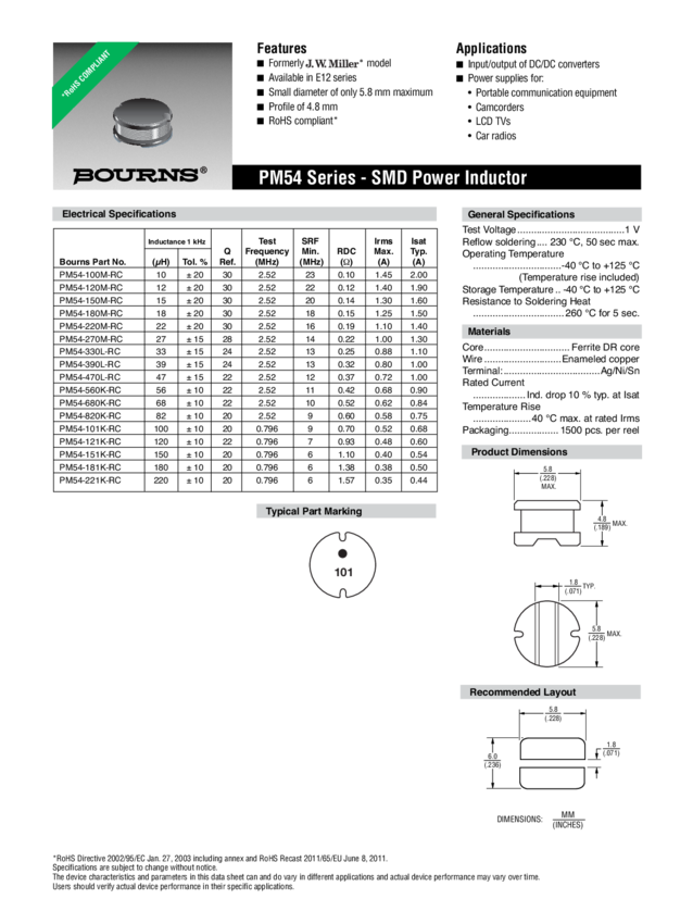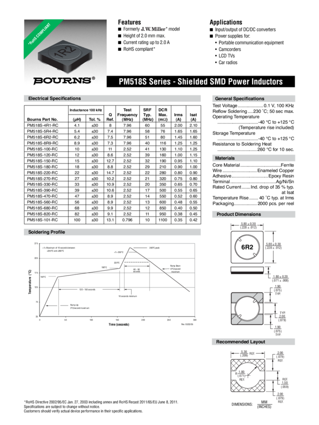 Ind Power Bobbin Core 1mH 20% 100KHz 10Q-Factor Ferrite 500mA T/R