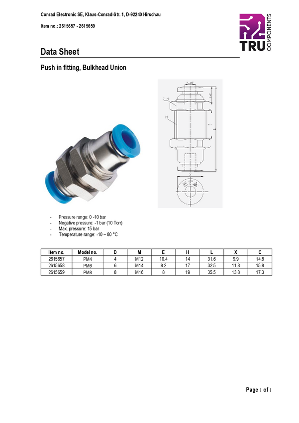 TRU COMPONENTS Łącznik prosty PM6 Średnica rury: 6 mm 1 szt.