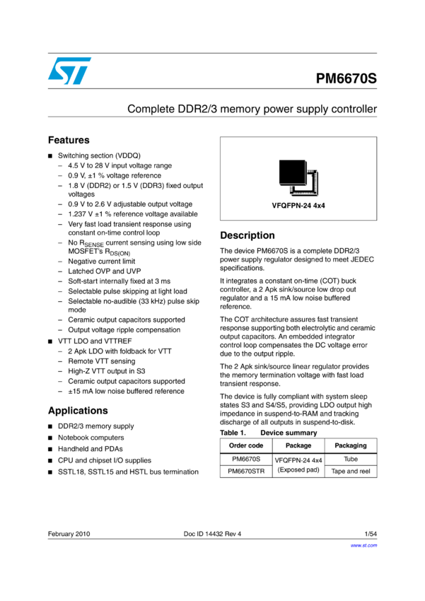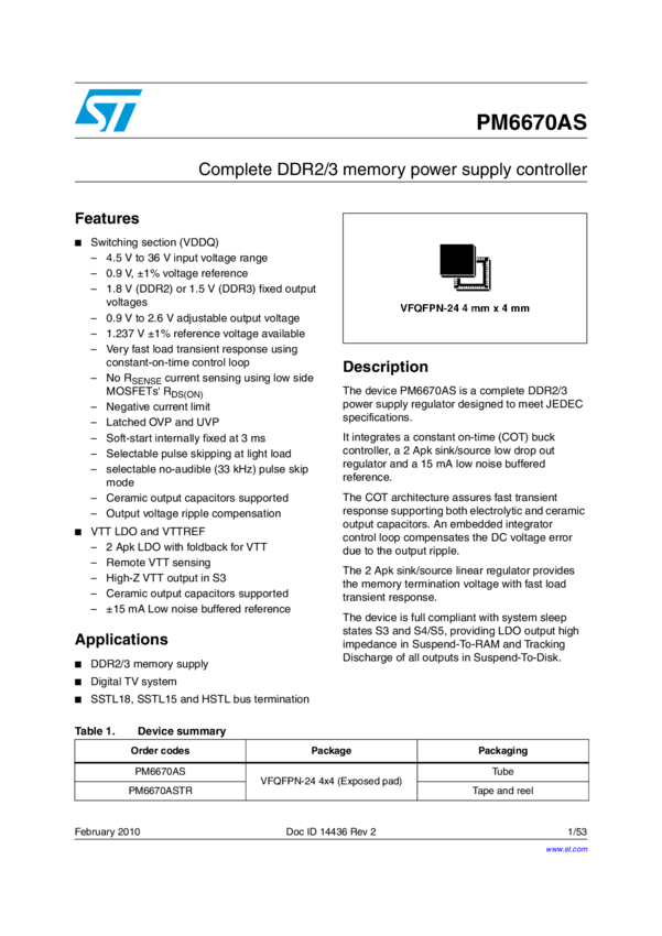 Complete DDR2/3 Memory Power Supplies Controller 24-Pin VFQFPN EP T/R
