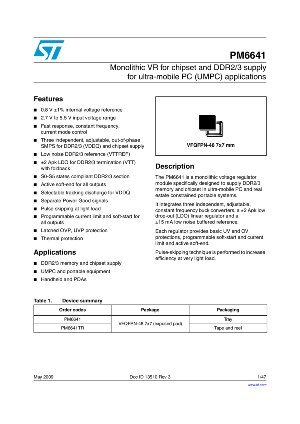 Monolithic Voltage Regulator 48-Pin VFQFPN EP T/R