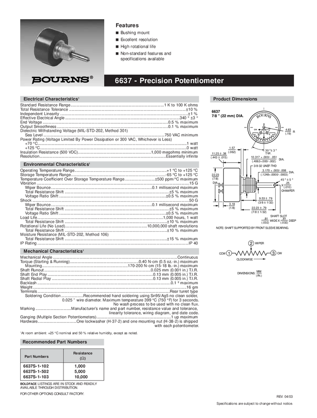 Potencjometr przew.pl.; tuleja śr9,5 dł.10mm;lin 2%; tol.20% 1 obr; śr.22,23mm; ośka 1/4"=6,35mm dł.20mm + nacięc gł.8,75 mm; trwałość 5 mln.cykli; moc 0,5W; Bez stopu; wyk. specjaln e 23,5 kohm ( 20 kohm) ; 2x 54 deg+dead band 20 deg.; IP50