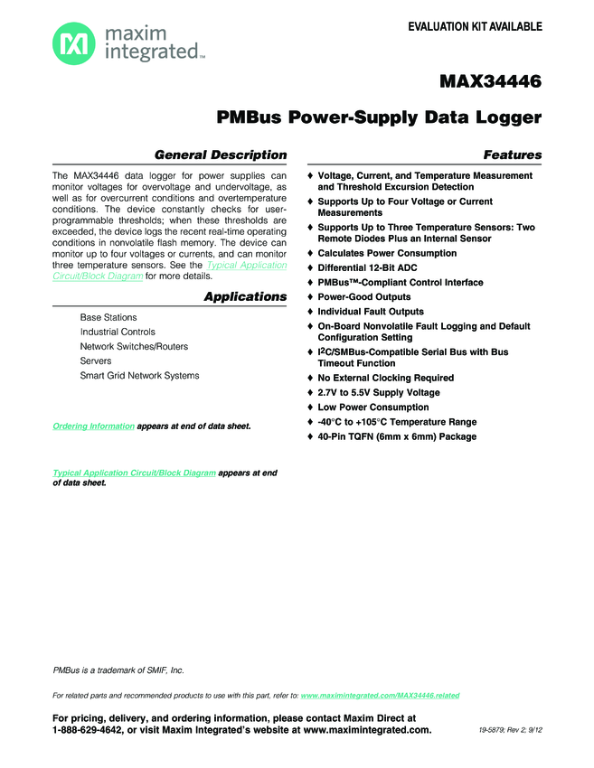MAX34451 PMBus 16-Channel V/I Monitor and 12-Channel Sequencer/Marginer