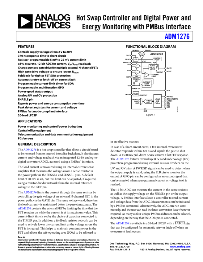 ADM1276: Hot Swap Controller and Digital Power and Energy Monitoringwith PMBus Interface