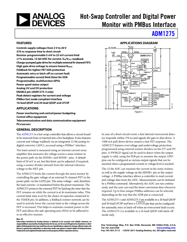 ADM1275: Hot Swap Controller and Digital Power Monitor with PMBus Interface
