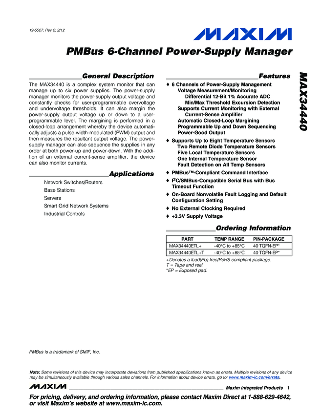 MAX34440 PMBus 6-Channel Power-Supply Manager