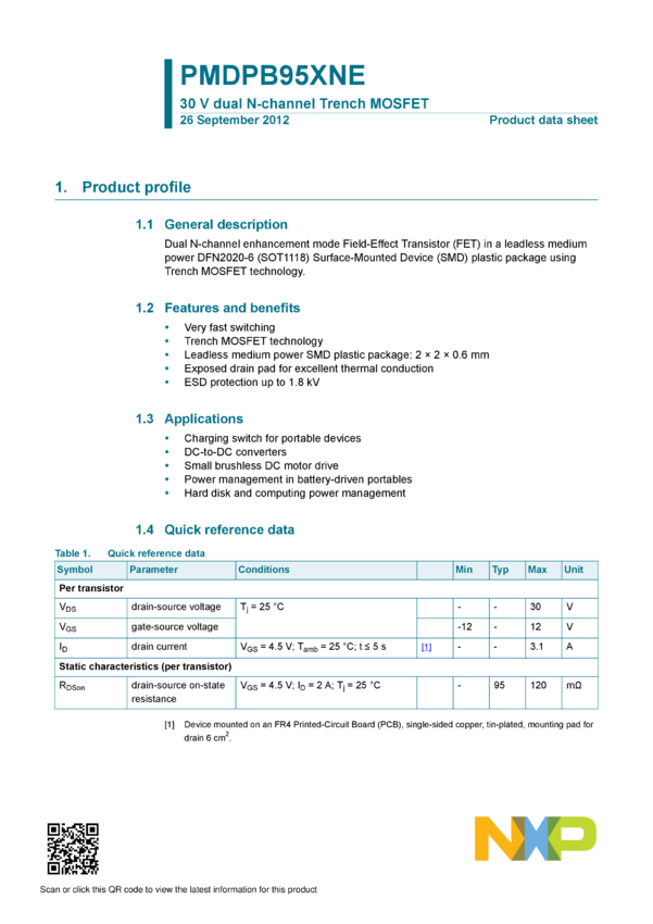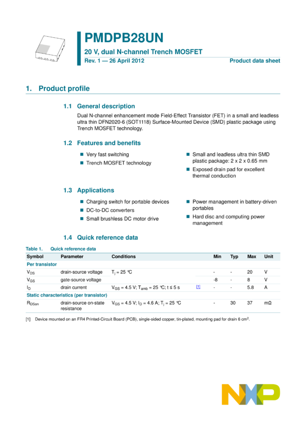 20 / 20 V, 800 / 550 mA N/P-channel Trench MOSFET