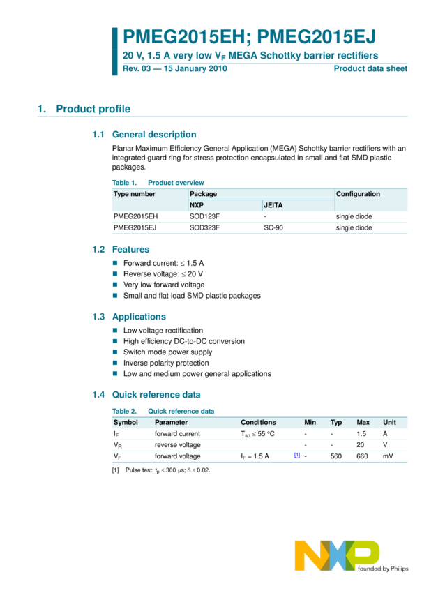 20 V, 1.5 A low VF MEGA Schottky barrier rectifier