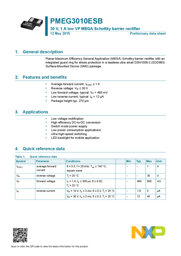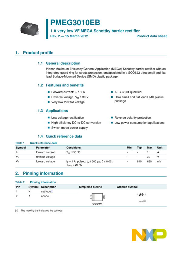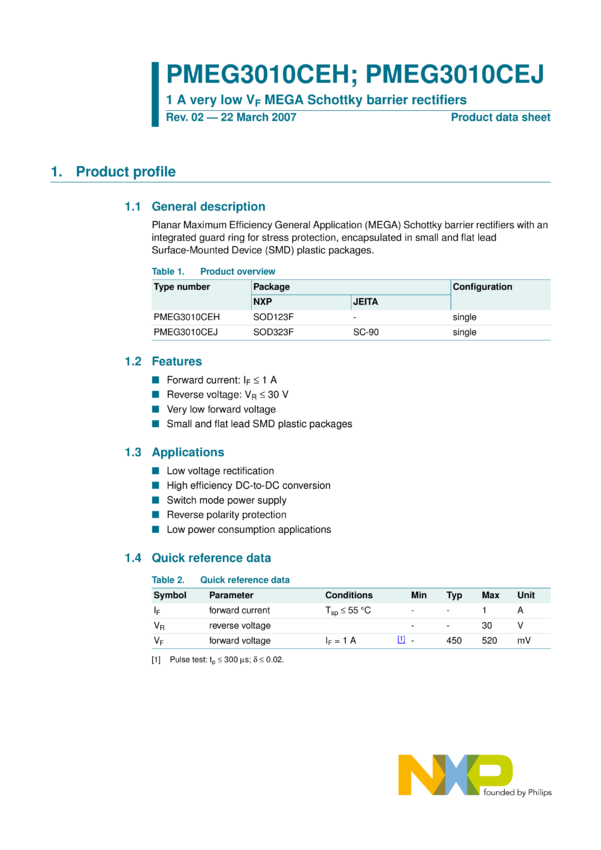 30 V, 1 A low VF MEGA Schottky barrier rectifier