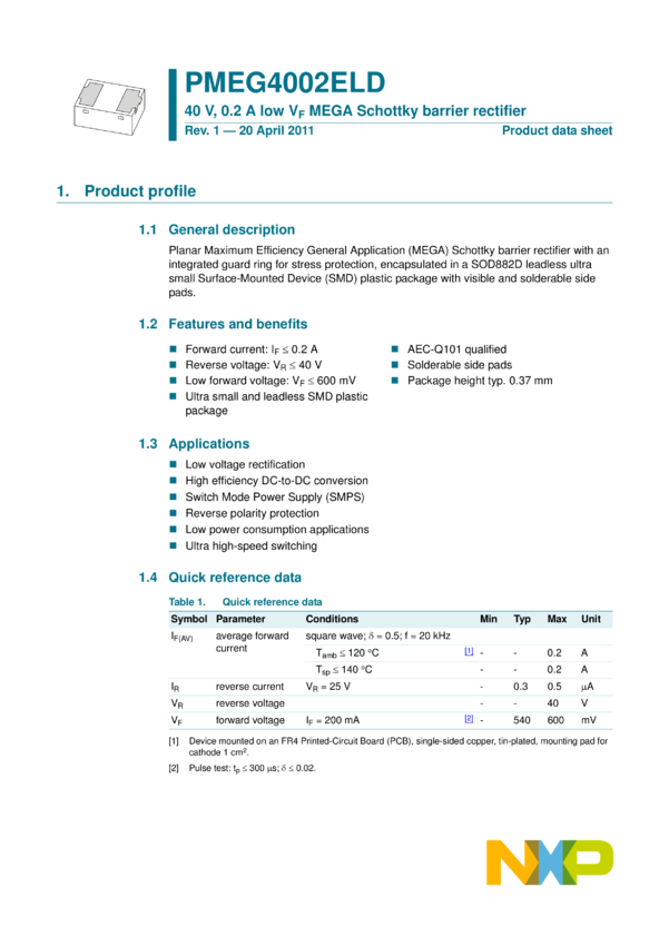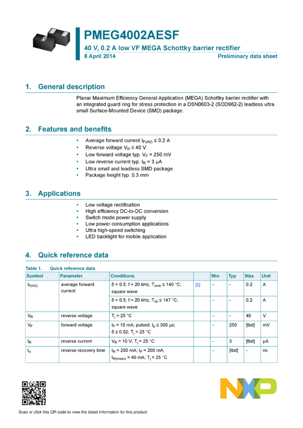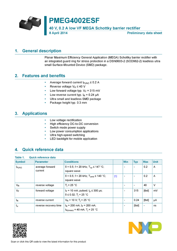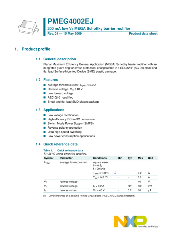 40 V, 0.2 A low Vf MEGA Schottky barrier rectifier