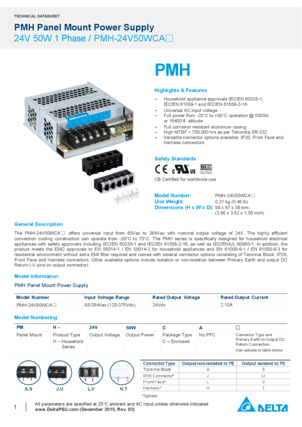 AC/DC Power Supply Single-OUT 24V 2.1A 50W
