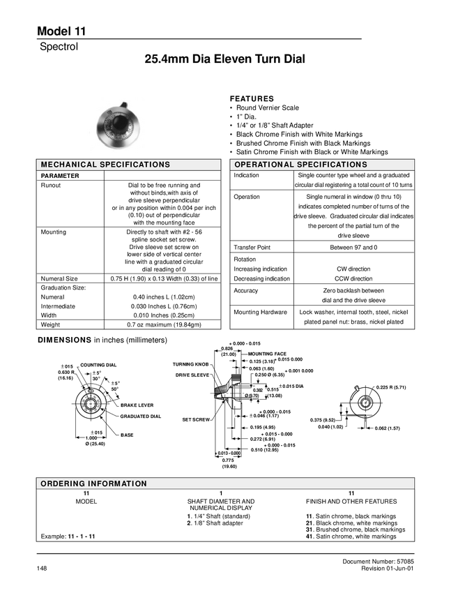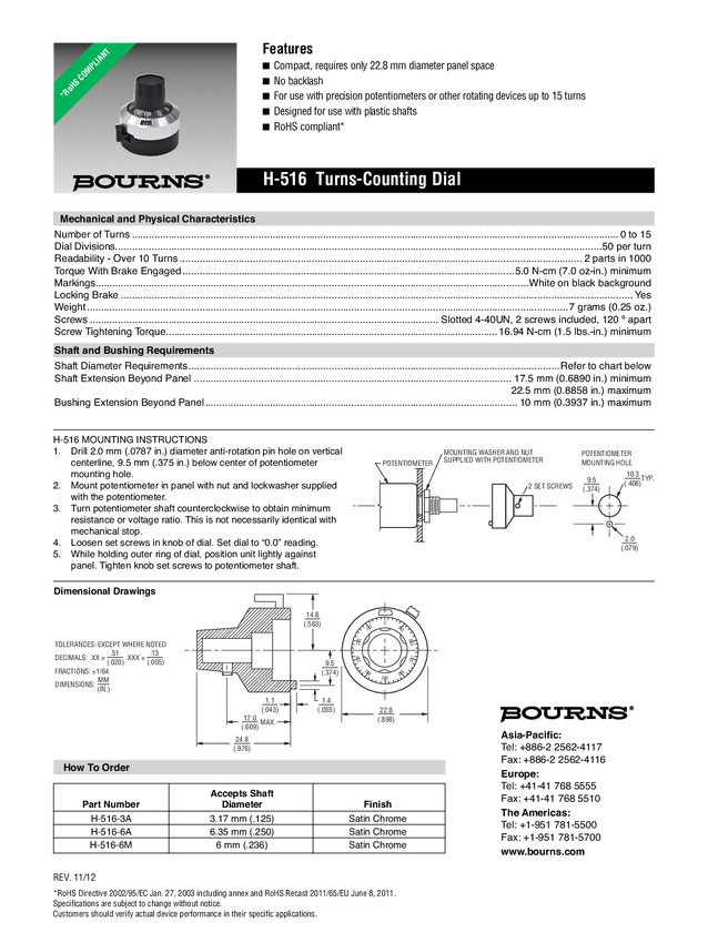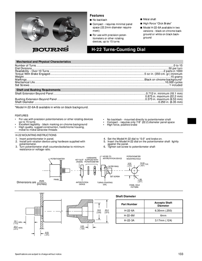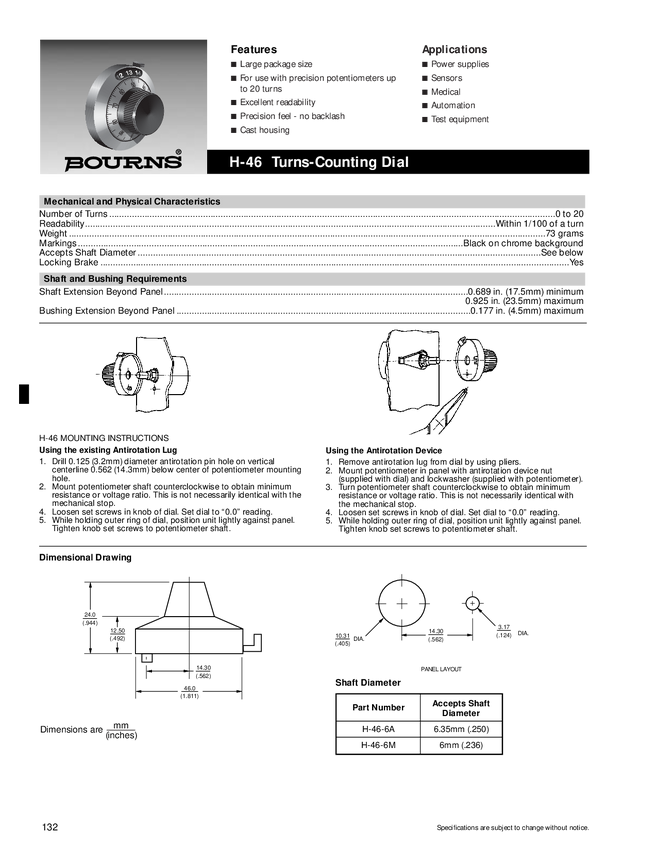 Gałka o średnicy 46mm; do ośki 1/4"=6,35mm; 0-11 obrotów; "Metalizowany" plastyk; Przy każdym przejściu przez "0" słychać "kliknięcie". Pakowany po 1 sztuce. W zastępstwie proponujemy model metalowy PMH-46-6A-1 Nieprodukowany do wyczerpania magazynu