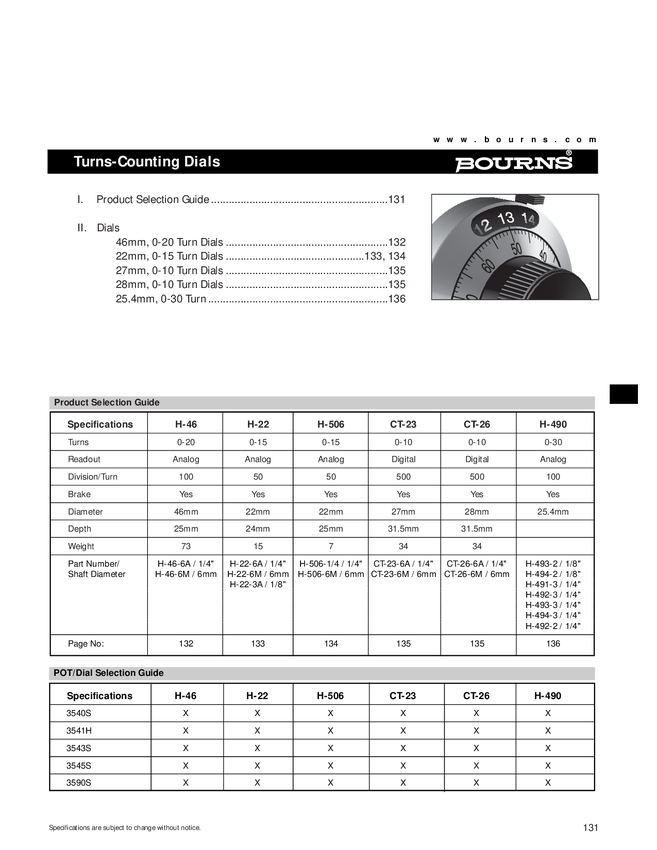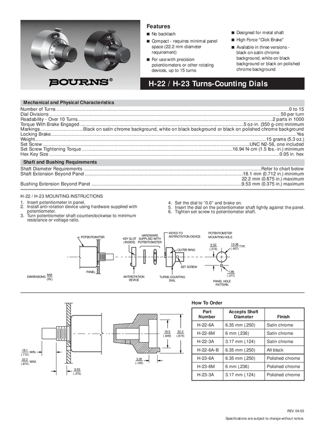 =PMH-507-6/H-506-1/4 BOURNS-SKALA Gałka średnica 22 mm