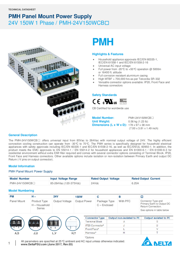 AC/DC Power Supply Single-OUT 24V 6.25A 150W