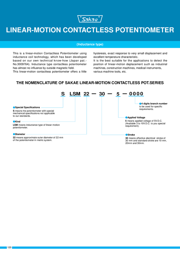 Potencjometr typu "contactless" indukcyjny "linear motion" bushing; trwałość 50 mil cykli; IP40; średnica 22mm; pomiar 34mm ( ośka 30mm) długość 90mm; 5V; wyprowadzenia 3 kabelki AWG26 dł 150mm