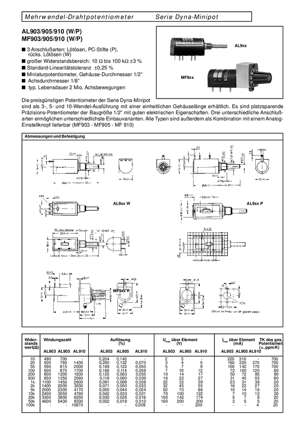 Potencjometr drutowy; Bushing; lin 0,3%; tol. 3% 3 obrotowy; średnica 13mm; ośka 1/8"=3,17mm trwałość 2,000,000 obr; moc 0,5W