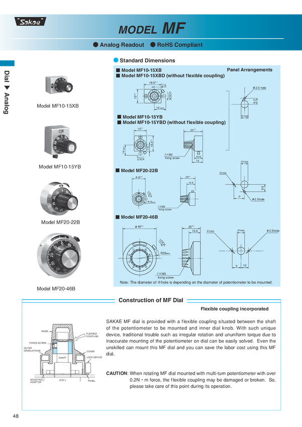 Potencjometr drutowy; nushing; liniowość=0,1% - Precision class; 5W; 10-obrotowy; średnica 1-13/16"=46mm; dł.56mm; ośka 6mm; dł.27mm; trwałość 2.000.000 pbr; na zamówienie wer sje podobne; dedykowana skala PMMF20-46B6