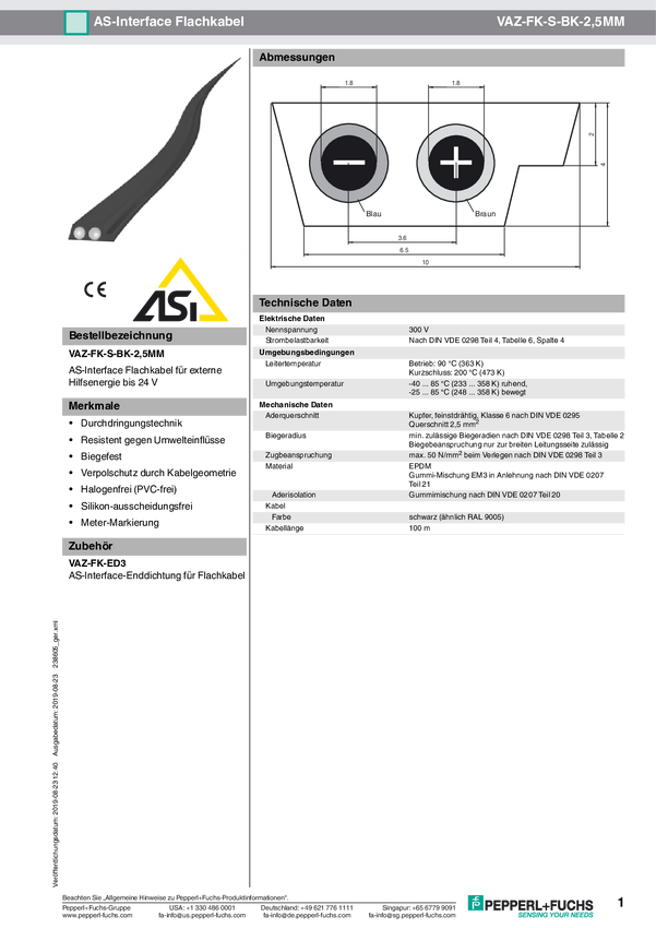 Pepperl+Fuchs 238605 Kabel połączeniowy czujnika/aktuatora 100.00 m 1 szt.