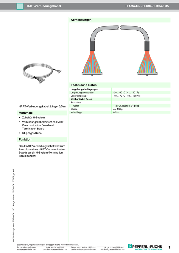 Pepperl+Fuchs 206079 Kabel połączeniowy HiACA-UNI-FLK34-FLK34-0M5 1 szt.