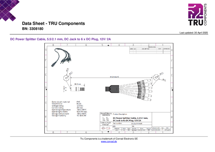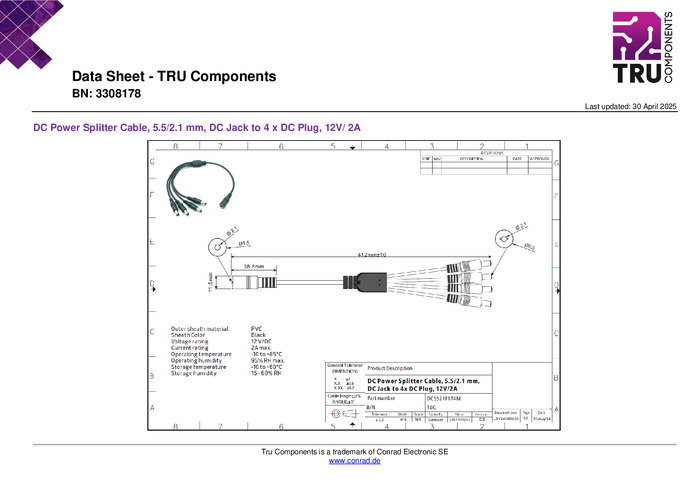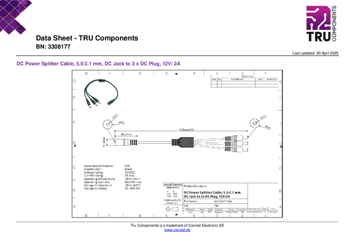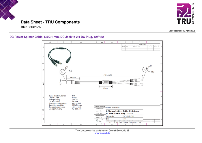 Złącze męskie połączeniowe DC TRU COMPONENTS TC-13232712 1 szt.