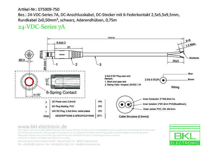Złącze męskie połączeniowe DC BKL Electronic 075909-750 1 szt.