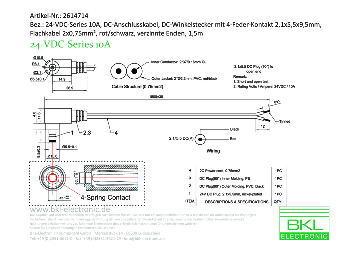 Złącze męskie połączeniowe DC BKL Electronic 075910-750 1 szt.