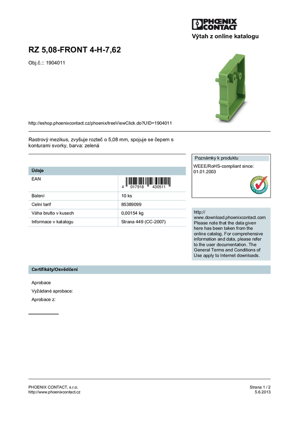 Phoenix Contact Element pośredni siatki RZ 1904011 10 szt.