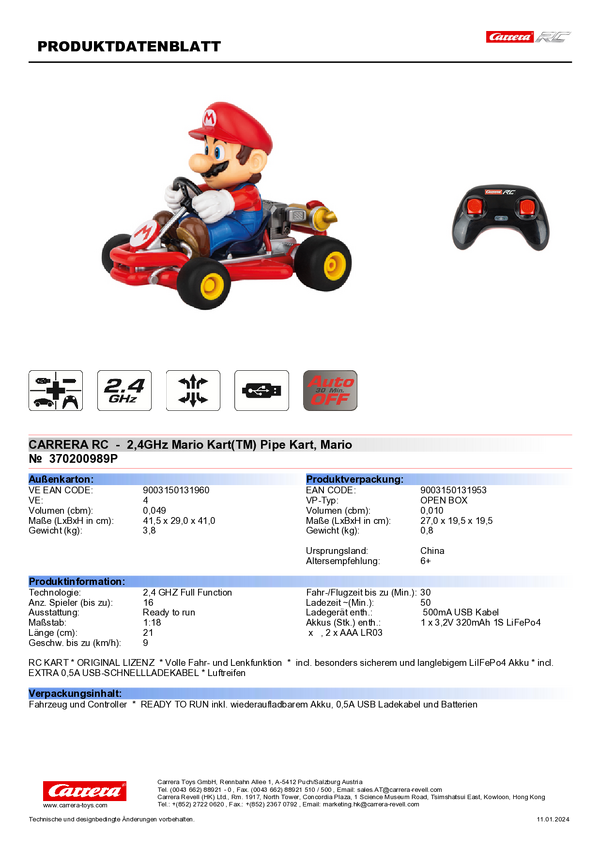 Carrera 370200989P Mario 1:18 Samochód RC dla początkujących Elektryczny Samochód wyścigowy