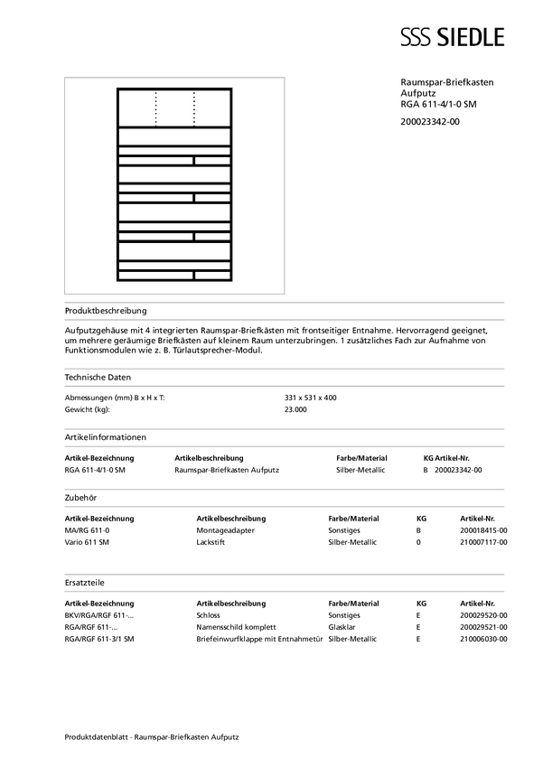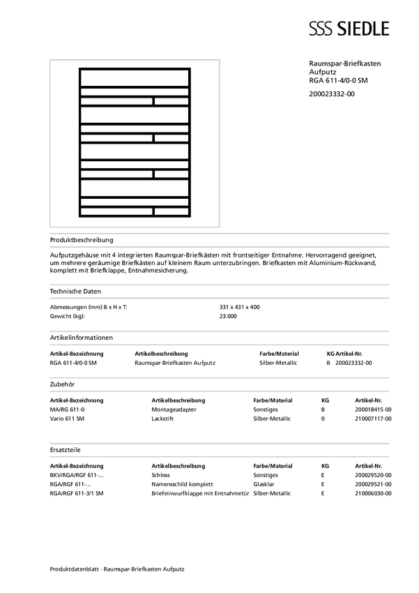 Skrzynka pocztowa Siedle 200023470-00 200023470-00 srebrny