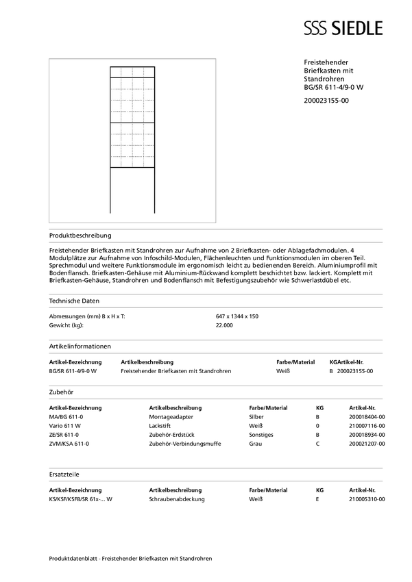 Skrzynka pocztowa Siedle 200023513-00 200023513-00 biały